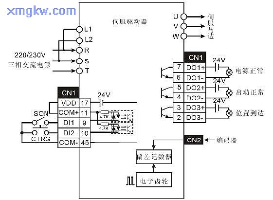 伺服啟動開關(guān) SON,接伺服驅(qū)動器的 DI1