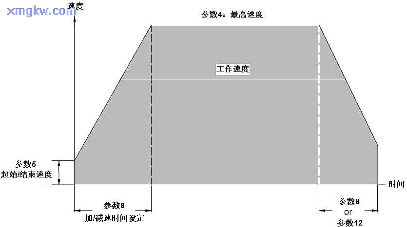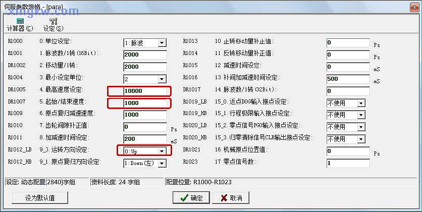 在伺服參數(shù)表格中,設(shè)定 “起始/結(jié)束速度 ”為1000,“最高速度”為10000,“加減速時間 ”為200ms。