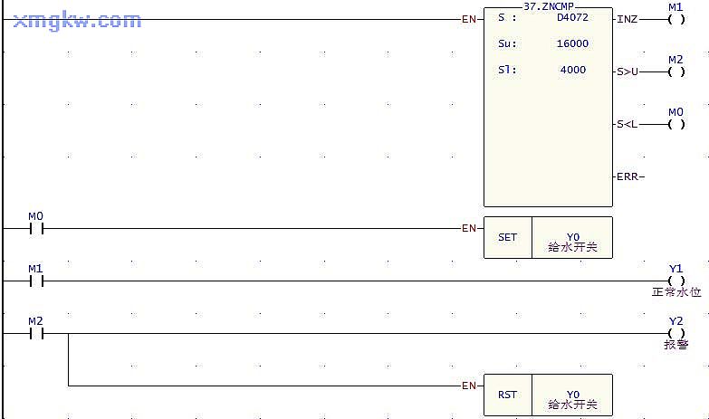 【控制要求】大型公用水塔利用模擬式液位高度測量儀 (0~10V電壓輸出 )測量水位高度,以便對水位進行控制。當(dāng)檢測水位處于正常高度時,水位正常指示燈亮;當(dāng)檢測水塔只剩余 1/4水量時,開始給水;當(dāng)檢測水位到達上限時,報警并停止給水。