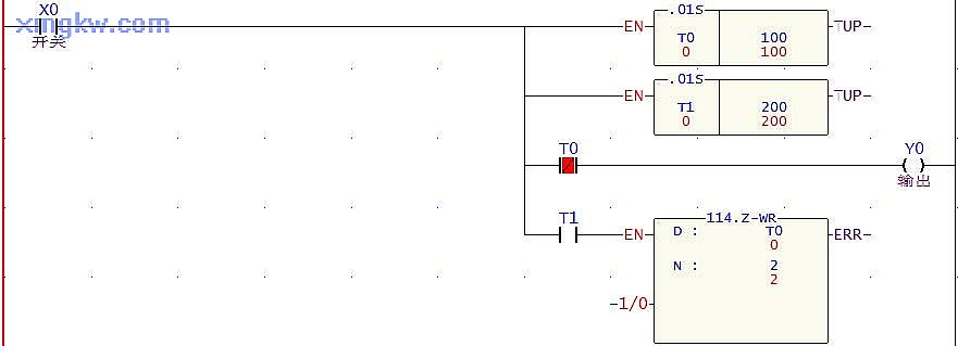 開關(guān) X0接通時,可以通過改變定時器的預(yù)定時間,達(dá)到改變脈沖波寬調(diào)變功能,產(chǎn)生震蕩波形?!驹f明】