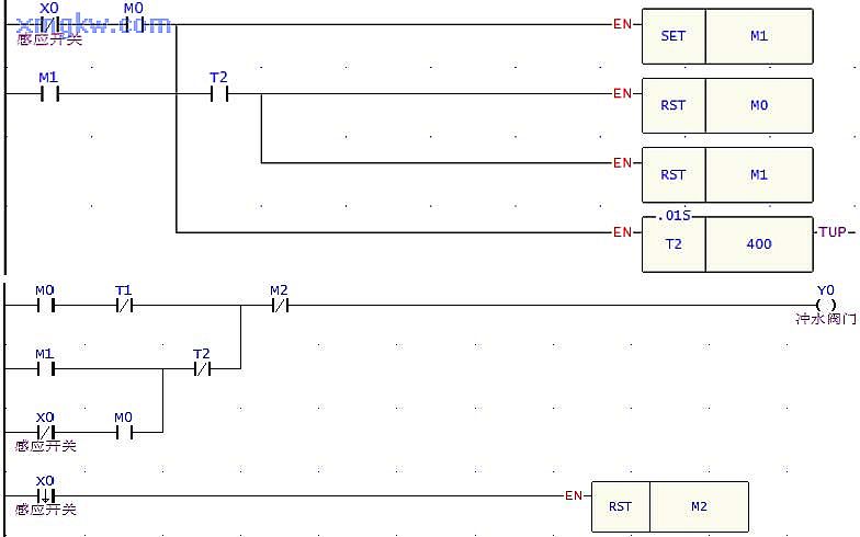 M1的自保,不論其間 X0是否發(fā)生狀態(tài)的改變,都會順利完成第二次沖水動作。