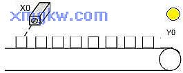 X0 | 產(chǎn)品計數(shù)光電傳感器:當檢測到產(chǎn)品時, X0狀態(tài)變?yōu)?ON |