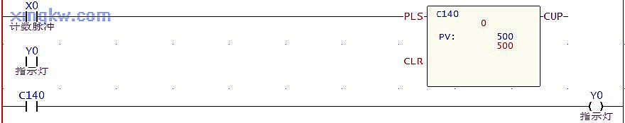 - C140計數(shù)達到 500次時, Y0=ON,生產(chǎn)指示燈亮,同時對產(chǎn)品生產(chǎn)計數(shù)重新復位。