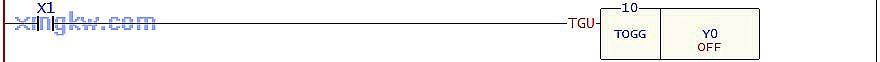 按下按鈕 X1,輸出 Y1動作;再按一次按鈕 X1,輸出 Y1停止工作;如此反復(fù)運作。